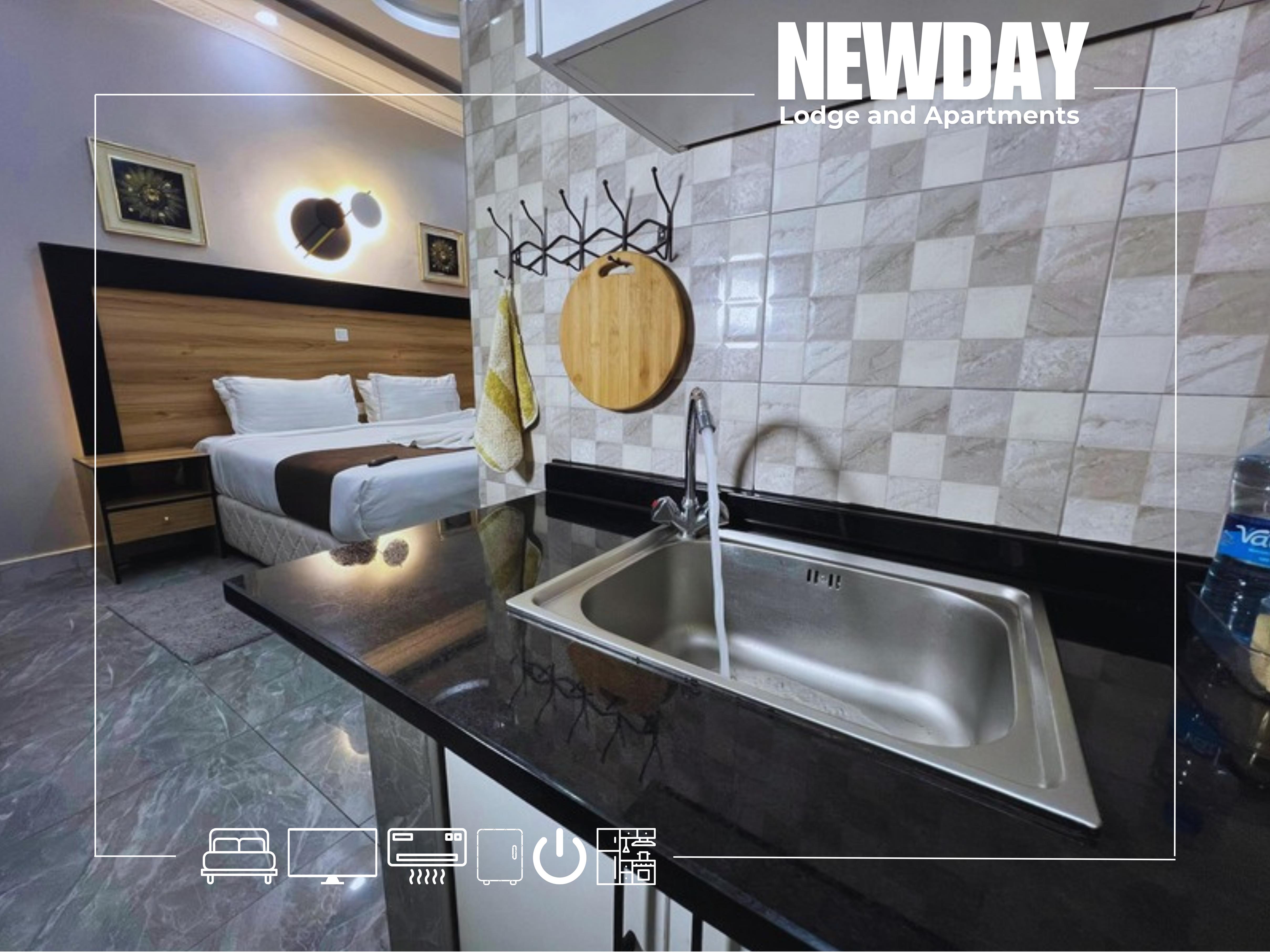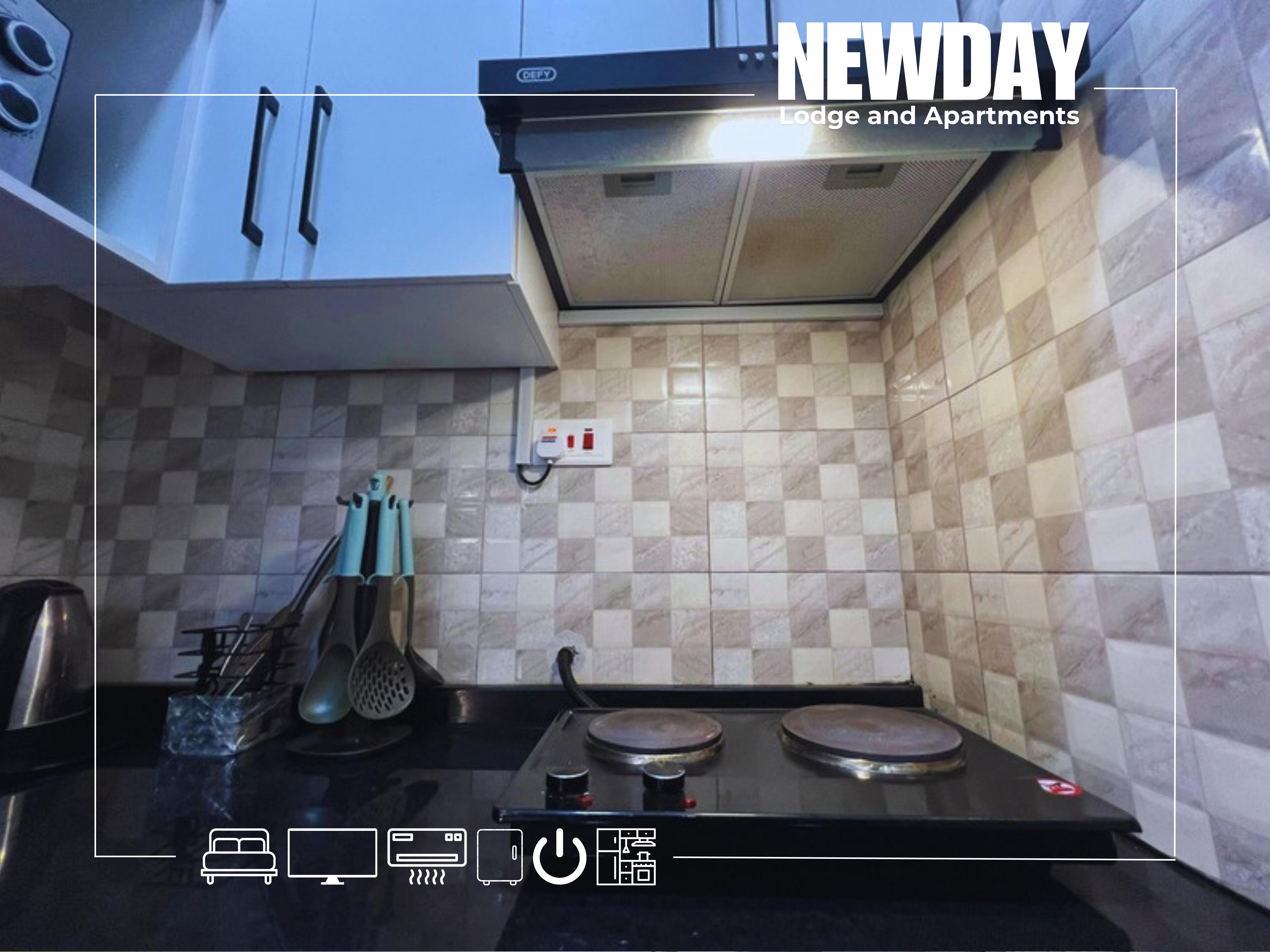 This is a self-catering, self-contained room with a king-size bed, WiFi, mini fridge, air conditioner, Smart TV, shower and a mini kitchen.